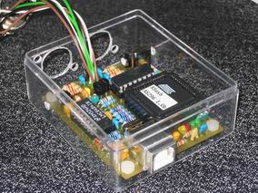 Wenn alles funktioniert folgt die Gehäusebearbeitung. Das mitgelieferte Metallgehäuse habe ich durch ein durchsichtiges Schraubengehäuse ersetzt. Dies ließ sich erheblich einfacher bearbeiten. Die beiden DIN-Buchsen sitzen sehr knapp über den Bauteilen - dies ist auch bei dem beiliegenden Metallgehäuse der Fall!