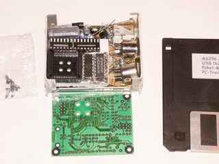 Nach dem Auspacken befinden sich alle Bauteile im Gehäuse. Die Aufbauanleitung befindet sich auf der Diskette als PDF und muss selbst ausgedruckt werden. Zusätzlich gibt es von jedem Aufbauschritt der Anleitung ein zugehöriges Bild (einige davon sind unten abgebildet - danke an die AATIS).