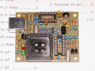 Das Ergebnis sieht dann ungefähr so aus (hier 180 Grad gedreht). Die ICs werden noch nicht in die Fassungen gesteckt!