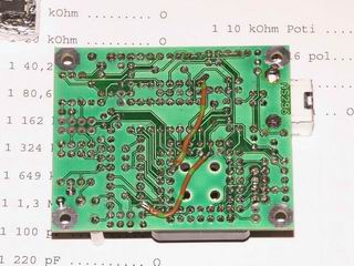 Auf der Rückseite sind noch zwei Verbindungen mit isolierter Litze herzustellen. Die Punkte sind durch entsprechende Lötflächen schnell zu finden. Die Beine der Bauteile sollten nicht länger als die Pins der IC-Sockel sein. Die Platine liegt sehr niedrig im Gehäuse - siehe dazu auch die Hinweise in der Bauanleitung.