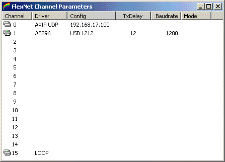 Nun kommt der spannende Augenblick. Einsetzen der ICs in die Sockel und Anstecken des USB-Steckers an das Modem. Am PC sollte das Modem erkannt werden (Popup: neue Hardware gefunden 'AS296'). Ein Treiber für Windows selbst ist nicht erforderlich, die AS296.DLL von der beiliegenden AS296-Disk wird ins Flexnet-Verzeichnis kopiert. Nach dem Start von Flexctl.exe unter Parameters auf die erste leere Zeile doppelklicken (hier Channel 1), als Treiber AS296 auswählen und die benötigte Baudrate und TXDelay wählen. Nun kann das Packet-Programm gestartet werden. Als Device/Port wird AS296 ausgewählt.